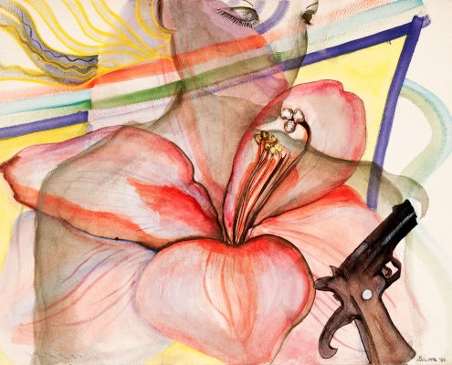 The LADY AS LANDSCAPE series is a personal reflection of life-saving surgeries, paralysis, and healing, as shown through a process of transformation of trauma into beauty. They examine the physical body as the place where the process of life is reborn; incorporating trees, flowers, earth, fire, water, cityscapes, and sky. The expression of stagnation to freedom portrays overhauling paralysis through images of roots, rocks, bubbles and flowers imbedded in healthy, beautiful bodies.