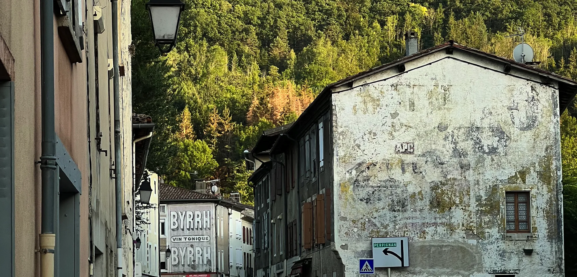 In Belesta: Carrefour SUPERMARKET – click link for hours -you can grab snacks and necessities; also has gas pumps & coin laundry machines. We also have a decent Pharmacy de la Haute Vallee, Chez Titi tabac w/coffee and wine, Boulangerie Sylvestre, Boucherie Julia, an ATM machine next to the tiny Post Office (you can only buy stamps here, but buy postcards at Chez Titi, and can only mail in the box at the old PO across from Palais Cathare when the little PO isn’t open as they have no exterior box), and of course Palais Cathare, which is the only hotel, restaurant and bar, and is where most of you will be staying. There are a couple Bric-a-Brac with amazing finds, and a gorgeous Potterie shop with many items small enough to bring home gifts easily.
