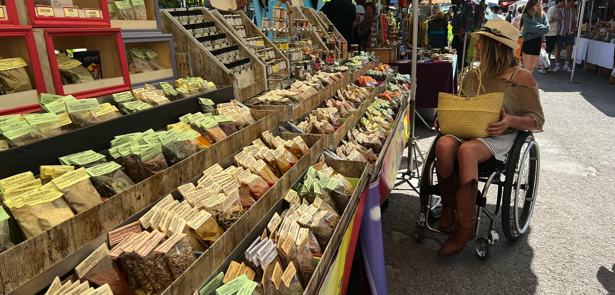 MORNING MARKET is right in Belesta. Small, but some sweet little items to grab – usually some bakes goods – as well, the boulangerie is right there.